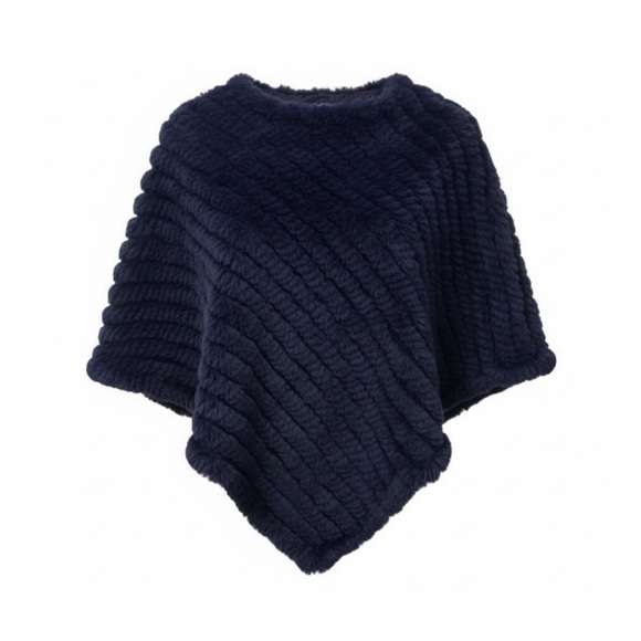 Diana Rosh Navy Poncho Rex Rabbit Fur
