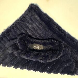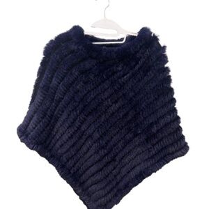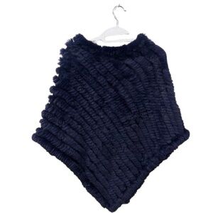 Authentic Diana Rosh rex rabbit fur poncho in a stunning navy shade that is no longer widely available, making it a rare and unique find.