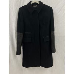 Diana Von Furstenberg Wool Blend Coat size 8. Black. Leather accents. MSRP $550. In good pre-owned condition. Some wear, as pictured.