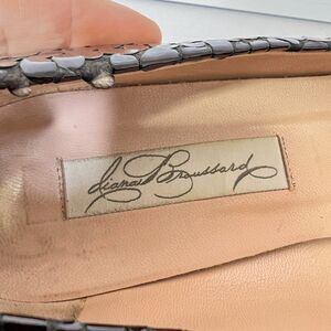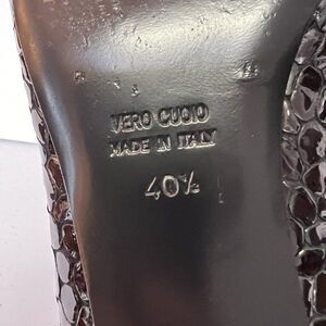 Diana Broussard Dark Brown Patent Croc Embossed Leather Low Block Heel Pumps
