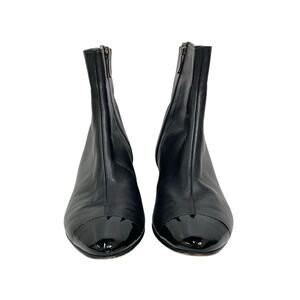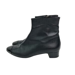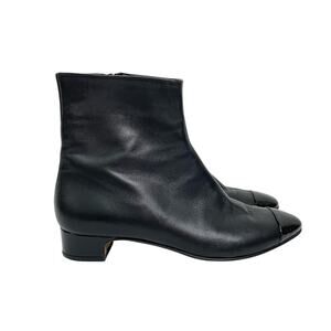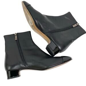 Diane B. Milano Italy Sz 7/37 Black Leather Pointy Patent Leather Cap Toe Bootie Ankle Boot
