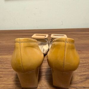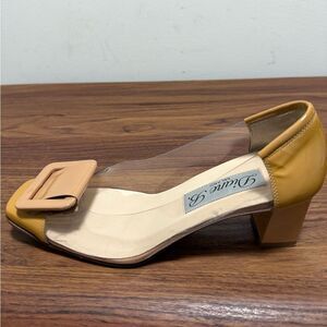 Diane B Tessa Lucite Block Heel Pump in Nude Patent Leather. Size 37.