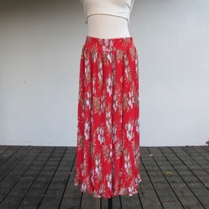 Top and skirt lined in a solid red-orange georgette.