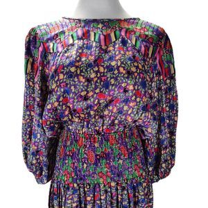 Diane Freis Colorful Georgette Midi Dress Size L Boho Floral Print Elastic Waist