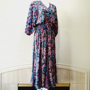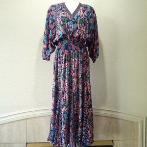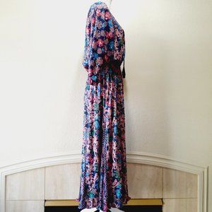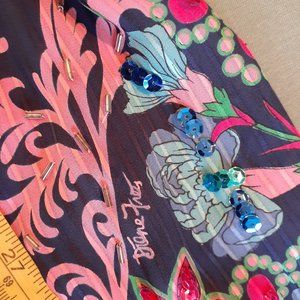 A beautiful floral in blues, pinks greens interspersed with sequin and bead embellishments