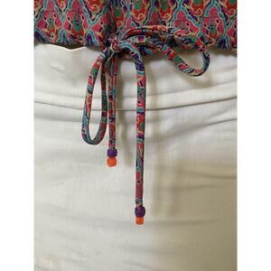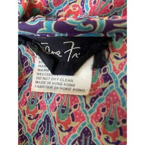 Diane Freis Top Blouse 3/4 Balloon Sleeve Tie Geo Floral V Neck Pleat ta…