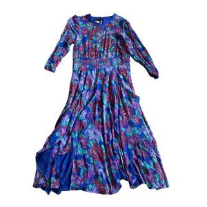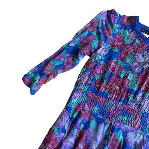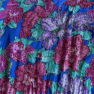 Diane Freis Vintage Floral Dress Beaded Long Sleeve 100% Silk Dancing Size Large