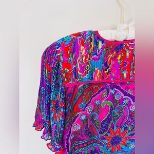 Diane Freis Vtg 1980s Blouse | Paisley Floral Print Pleats M/L