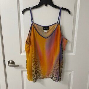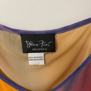 Diane Fres Sleeveless Top. Multicolor. L-XL. V-Neck. Adjustable Strap. 100% Polyester. Hand Wash Warm. Hang To Dry. Please note that the size tag is taken off the top so please refer to the measurements in the photos above for correct sizing.