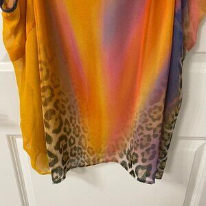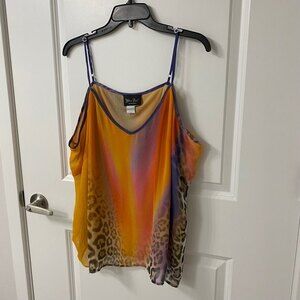 Diane Fres Vibrant Colorful Sleeveless Top. Orange Multi. L-XL. Leopard Print,