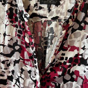 Gorgeous red, grey, white and black top. buttons to the middle if you want to wear something underneath. Pre-owned, good condition with no major defects. Selling cheap because I know how hard it is to find plus size affordable clothes. This item has been worn. Smoke and perfume free, pet friendly home.