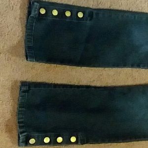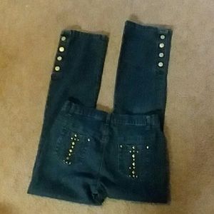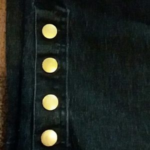 Navy blue wash jeans. Beautiful gold buttons on bottom of each leg. Like new, no hole or stains.
