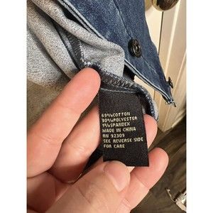 Classic blue jean jacket. Button-front closure. Two chest pockets.