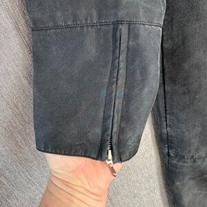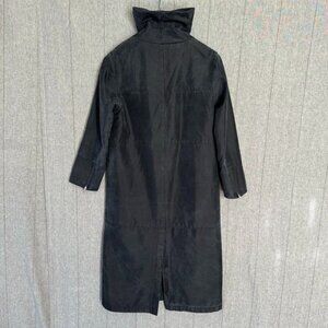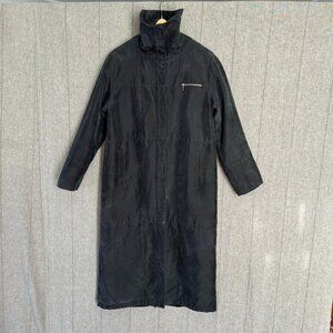 Diane Gilman Collection Black 100% Silk Funnel Neck Minimalist Boxy Long Jacket Size Small
