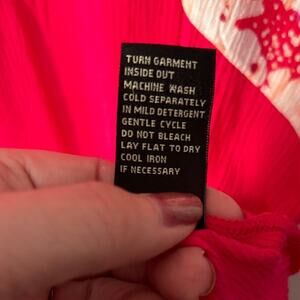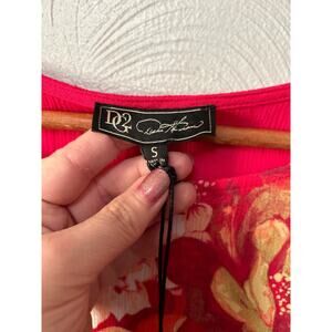 Diane Gilman DG2 Bright Pink Floral Crinkle Short Sleeve Blouse - Size Small NWT