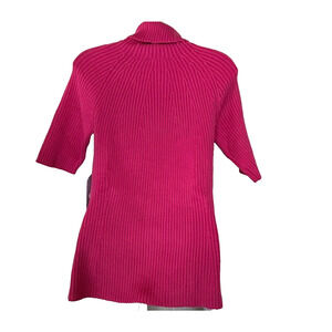 Diane Gilman DG2 Turtleneck Sweater Womens L Pink Half Sleeve Knit Ribbed New