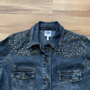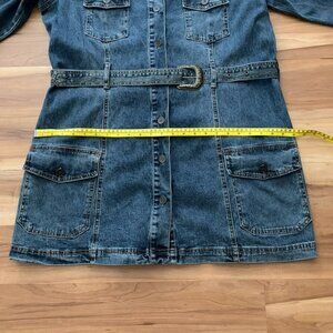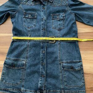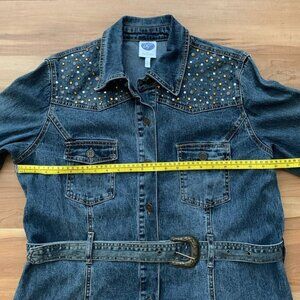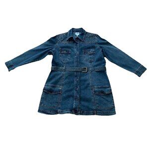 Diane Gilman Denim Dress Studded Belted Pockets Button Down XL Blue Western