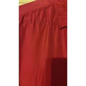 The Diane Gilman Fuchsia Pink Silk Blouse is a stylish and versatile addition to any wardrobe. With a classic collared neckline and button closure, this blouse is perfect for both casual and business occasions. Made from lightweight silk fabric, it is suitable for all seasons and features a relaxed fit with a slit detail. The solid pink color and oversized fit add a pop of color and a trendy touch to the garment. Pair this blouse with jeans for a casual look or dress it up with pants for a more polished appearance, all while ensuring it is hand washed to maintain its quality. Good condition some signs of wear pictured. There are some snaps in the fabric pictured.