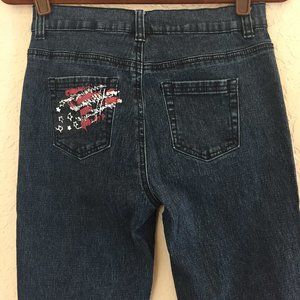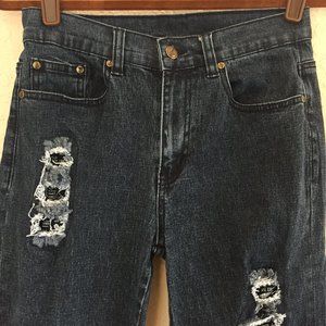 Diane Gilman Lyric Woodstock Dark Blue Distressed/Patched Skinny 5 Pocket Jean
