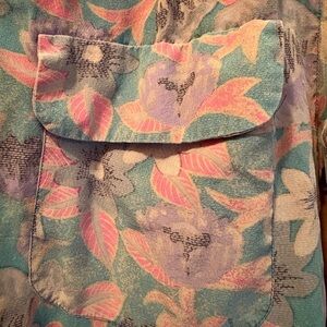 Diane Gilman Pink and Green Button Down Shirt Floral Design 100% silk