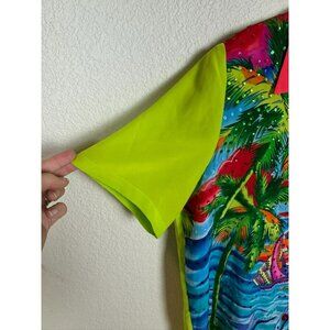 Diane Gilman Silk Blouse Top Size Large Sequin Tropical Dolphin Colorful