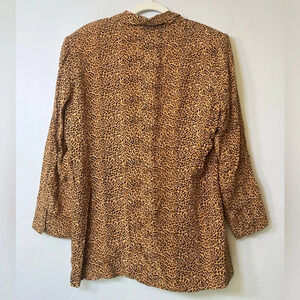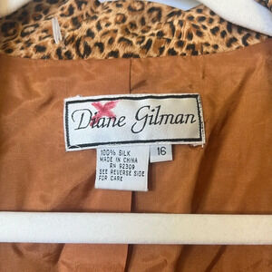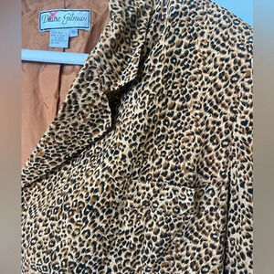 Diane Gilman Vintage 90s Mob Wife Oversized Cheetah Print Silk Blazer. A12