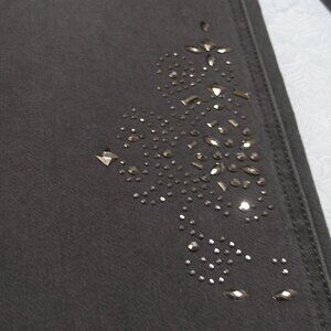 Diane Gilman Women's Dark Grey Jeans Size 12P with silver stud embellished, stretchy jeans.