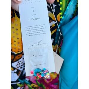 The Diane Gilman Women's Vintage Blouse in size large is a stylish and unique addition to any wardrobe. Made from 100% silk with a satin fabric type, this blouse features a collared neckline, button closure, and long sleeves. The tiger print pattern adds a touch of animal print accent, making it perfect for various occasions such as parties, casual outings, or formal events. The lightweight and easy-care nature of silk make it suitable for all seasons, with a multicolor design that is both colorful and fashionable. Perfect for those who appreciate vintage style with a hint of nature and geek appeal. New with Tags
