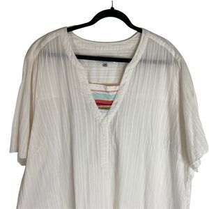 Diane Gilman Womens Short-Sleeve V-Neck White Cotton T-Shirt Tee Semi Sheer 4X