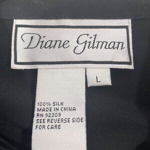 Diane Gilman vintage Silk Cityscape artsy sequin metallic Button-Up tunic top