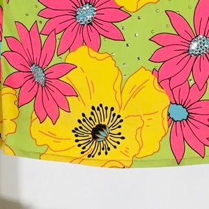 Fabric has some stretch to it. May be missing a rhinestone here and there but no large clumps, see photos for general wear, there is some very light spots on the back from it being tucked in