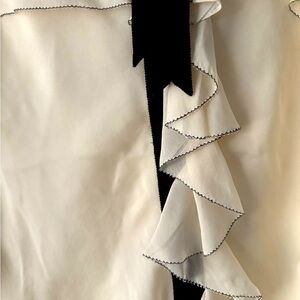 Diane Van Fürstenberg Cream Silk Blouse with Black Ruffle Detail Size 10