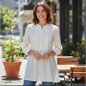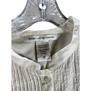 Size 12 Diane Von Furstenberg Lawrence shirt in nearly new condition. Pintuck pleating. Button front. White. 39 inch bust. 27 inch length.
