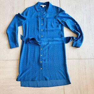 Lightweight, soft silk material. Not lined. Color bliue. Abstract print. Size 8. Pit to pit about 20”. Length 35” in the front, 38” in the back. Color blue. Gently worn few times, in great condition!