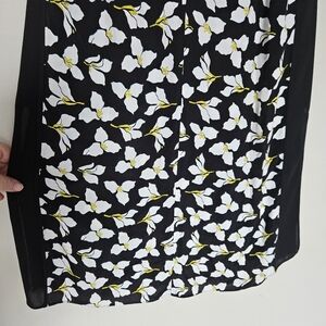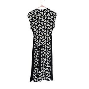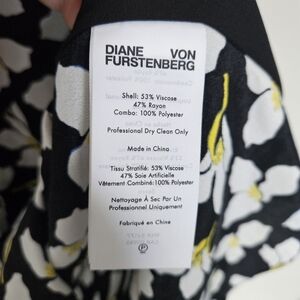 Diane Von Furstenberg Renese split neckline dress. Black white floral dress. Tie at waist.
