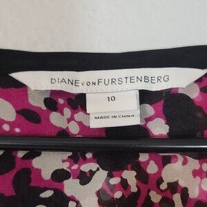 Diane Von Furrstenberg Lorelai Print Chieff In Cheetah Splash Pink Blouse 10