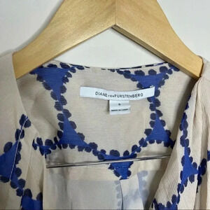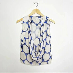 Diane Von Fursteenberg Cream and Blue Silk Sleeveless Blouse Size 0