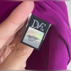 Diane Von Furstenberg 100% Silk Kaley Lily Crepe Sleeveless Purple Blouse Women’s Size 4. Has a back keyhole with a single button closure. Shell: 100% Silk. Lining: 100% Polyester. Dry clean only.