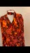 Very pretty vintage blue red orange autumn colors floral abstract button down 100% silk blouse, vintage! Ties in front with scarf style bow.