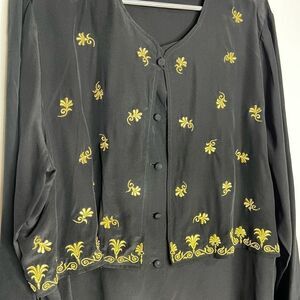 Diane Von Furstenberg 100% Silk Black Gold Embroidered Vintage Tunic Size 1X