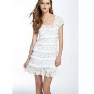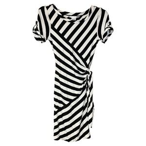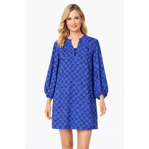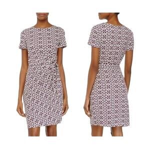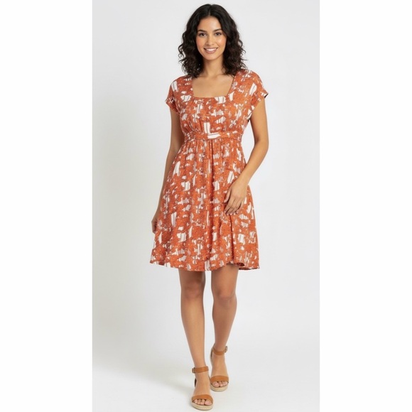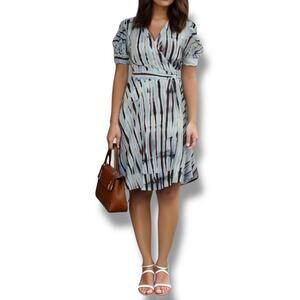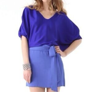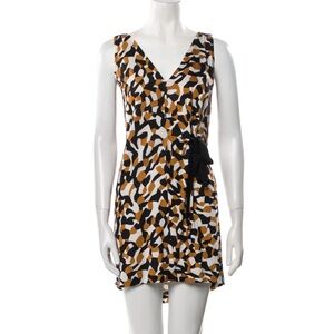 Diane Von Furstenberg Yana Abstract Pattern Short Cap Sleeves Side Waist Ties Square Neckline Hip Pocket Sheer Crinkle Silk Kaftan Babydoll Empire Waist Mini Dress