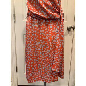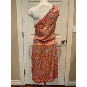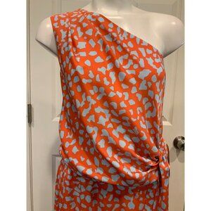 Diane Von Furstenberg Agantha Popcorn Orange & Blue One Shoulder, Size 14, NWT!
