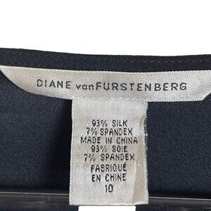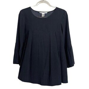 Diane Von Furstenberg Amada Silk Blend Black Size 10 Blouse Top 3/4 Bell Sleeve