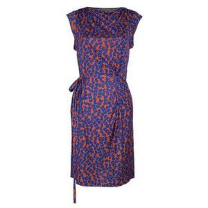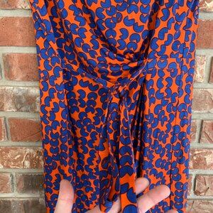 Diane Von Furstenberg Amberlin Orange Blue Print Belted Women's Size 8 Dress