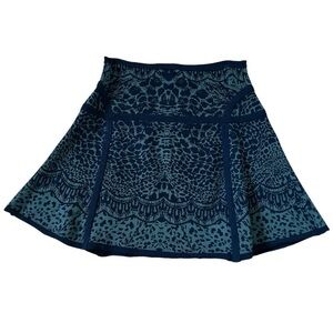 Diane Von Furstenberg Animal Print Jacquard Knit Green Black Flare Mini Skirt L