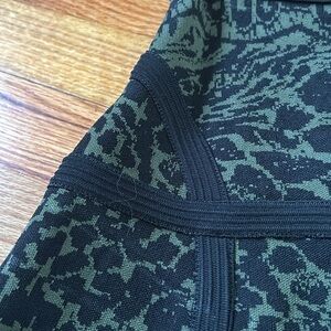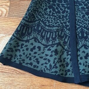 Diane Von Furstenberg Animal Print Jacquard Knit Green Black Flare Mini Skirt