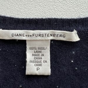 Diane Von Furstenberg Ballerina Style Wrap Top Navy 100% Wool Sweater Size Small
