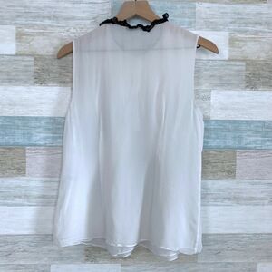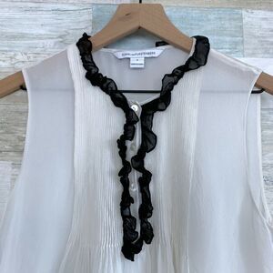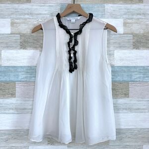 Diane Von Furstenberg Betsy Silk Tuxedo Blouse Black Ivory Sheer Ruffle Womens 8