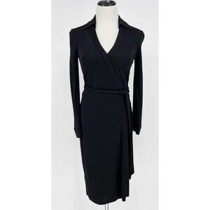 Diane Von Furstenberg Black Jeanne Size 2 Classic Stretchy Wrap Dress DVF E5