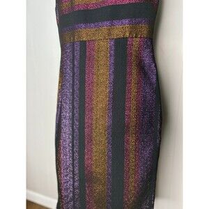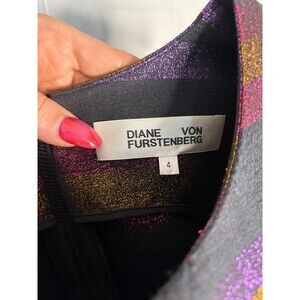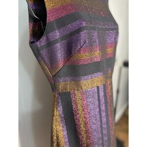 Diane Von Furstenberg Black Metallic Stripe Sleeveless Work Dress Size 4 Purple